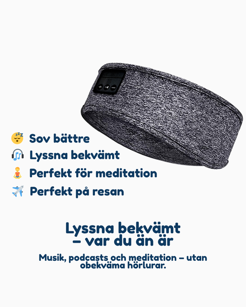 Dreamband™ är ett mjukt pannband med inbyggda högtalare som gör det enkelt att lyssna på musik, podcasts eller meditation – utan obekväma hörlurar.